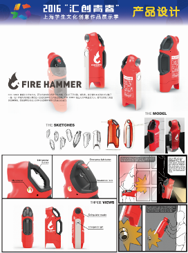 519日,在上海理工大学的体育运动中心第一届“汇创青春”上海学生文化创意作品展示季(产品设计类)正式启动,本次活动中91制片 共提交了12件作品,2014年获红点优异奖的“Fire Hammer灭火器”作为参展作品,其余11件作品参加评选。最终91制片 取得一等奖1项,二等奖2项,三等奖4项的佳绩。