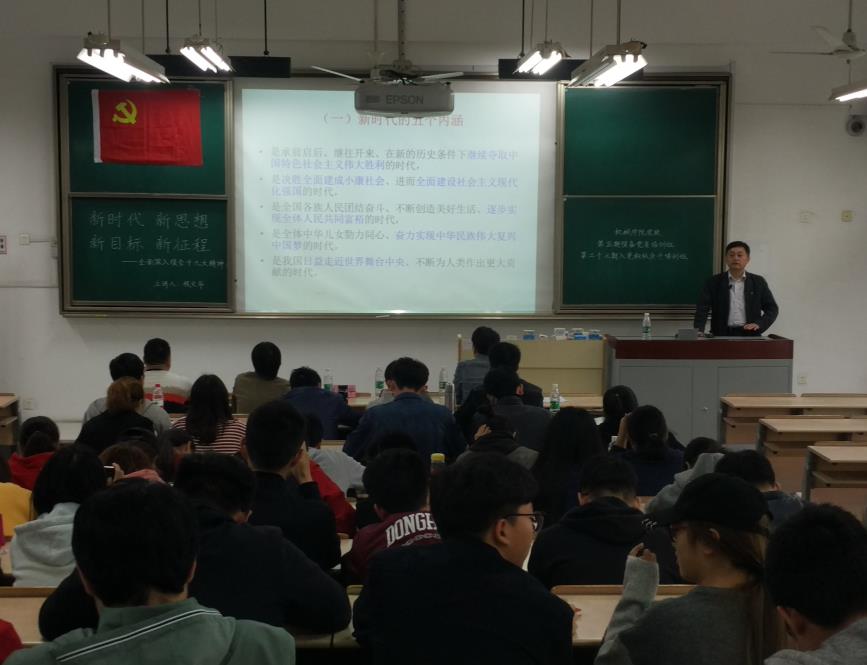 机械学院党委把学习贯彻党的十九大精神作为学生党员和入党积极分子教育培训的重要内容,11月7日,机械学院邀请了91制片 学习宣传贯彻党的十九大精神讲师团成员、马克思主义学院副院长钱文华做“新时代、新思想、新目标、新征程——全面深入领会十九大精神”的专题报告,机械学院党员教师代表、学生党员、入党积极分子聆听了报告。
