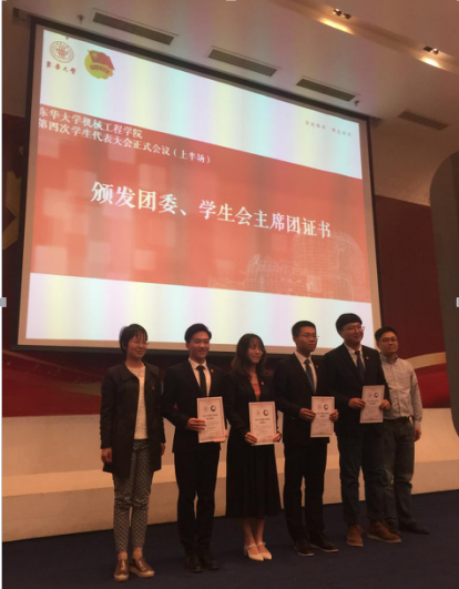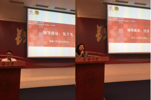 5月10日,机械学院第四次学生代表大会在松江校区图文信息中心第二报告厅举行。机械学院党委书记张千里、校团委书记沈洁、机械学院副院长唐智、机械学院党委副书记李宁蔚,兄弟学院团委书记代表、以及机械学院专兼职辅导员,机械学院全体学生代表、兄弟学院学生会代表与会。会议听取和审议机械学院学生会工作报告,机械学院研究生会工作报告,听取和审议学代会提案工作报告,选举产生机械学院第三届学生委员会委员和学生会新一届主席团。