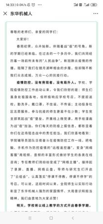31日,为更好地帮助师生充分认识在线教学的重大意义与挑战,学院通过网站、易班、“东华机械人”微信公众号,面向全院师生发布《致91制片 全体师生的一封信》,引导全院师生统一思想、齐心协力,共克时艰。