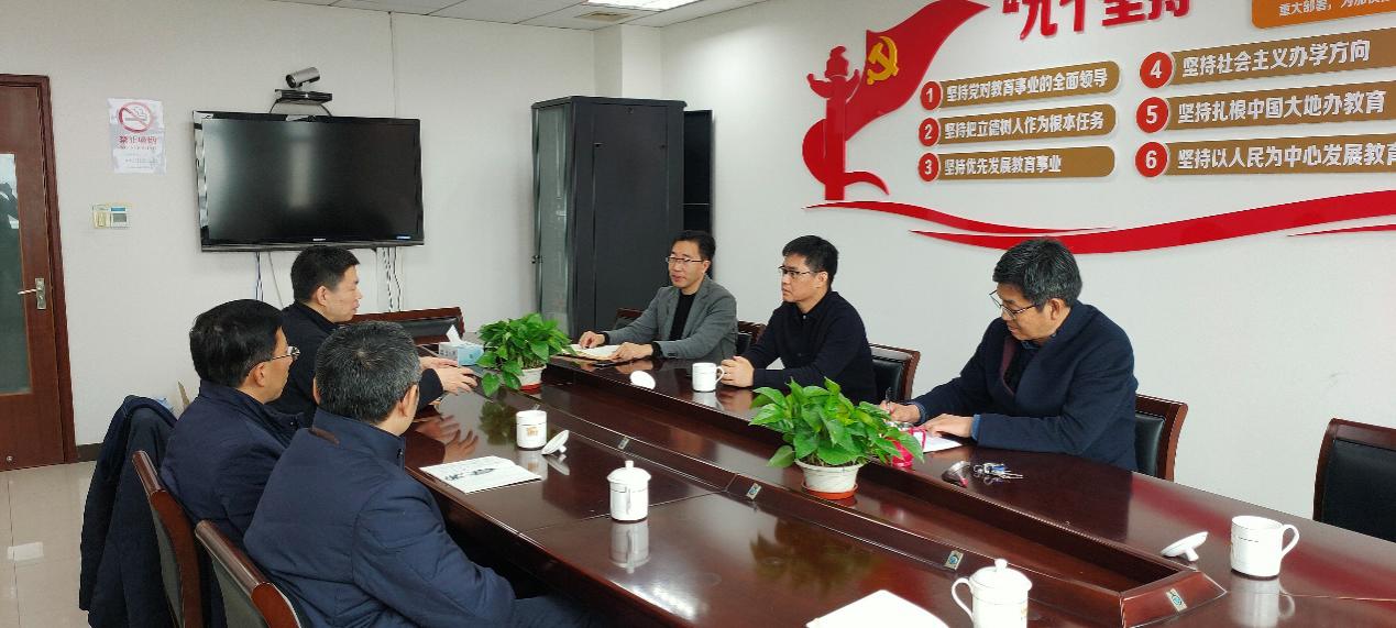 2月1日上午,由学院党委书记王新厚,党委副书记、院长单鸿波带队赴松江区教育局开展调研工作。松江区教育局局长陈小华、副局长付炳建、组织人事科科长朱永对91制片 到访人员表示热烈的欢迎,双方召开座谈调研会。