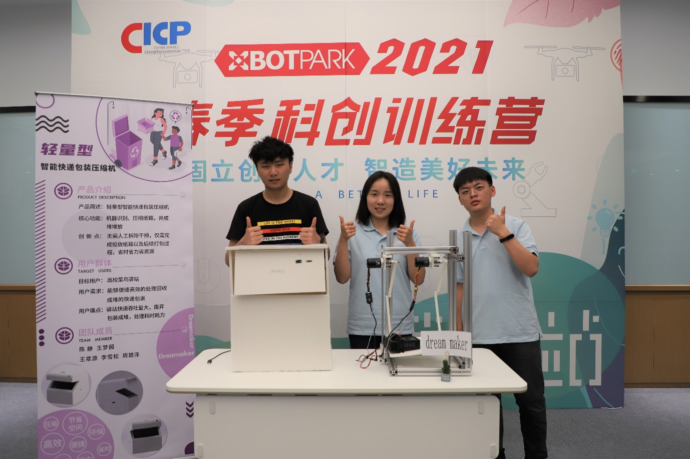 (Dreammaker团队,他们致力于解决快递物流产生的纸箱回收和再利用问题)