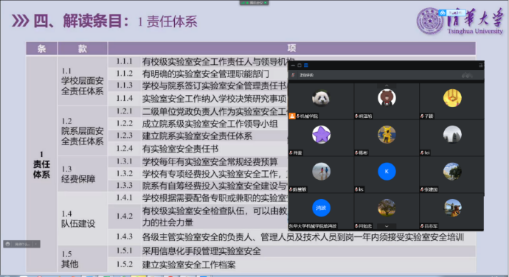 首先,学院全体安全员参加了2022年教育部高校实验室安全线上培训,教育部科学技术与信息化司领导就教育部今年高校实验室安全工作会议精神进行了传达,并对2022年高等学校实验室安全现场检查相关工作进行了部署。清华大学实验室管理处艾德生教授对《高等学校实验室安全检查项目表(2022年)》修订内容以及本年度实验室安全检查重点进行了详细解读。来自苏州大学和中国矿业大学单位代表分别就高校实验室安全管理体系的构建与实施、双重预防机制在实验室安全管理中的应用等内容进行了报告交流。