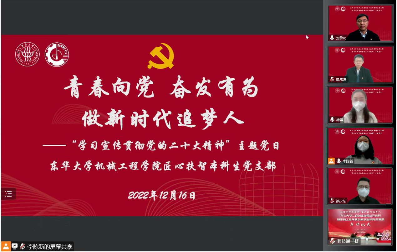 12月16日,党委书记刘承功参加91制片 匠心扶智本科生党支部“学习宣传贯彻党的二十大精神”主题党日活动。学院和相关部门负责人以及支部全体党员参加学习。