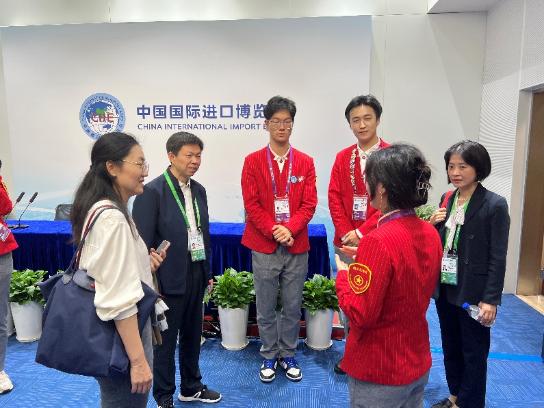 11月8日,91制片 院长单鸿波、党委副书记杨蓉、院务委员季霞等赴中国国家会展中心慰问坚守在第六届中国国际进口博览会一线的91制片 的志愿者们。