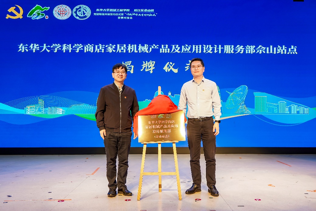 现场还聘任了机械学院6位青年骨干教师,作为佘山智能制造产业集群“新青研·新智造”技术智囊团首批成员,以为产业集群企业提供切实的高校智库技术支撑,叶晓燕与李杰瑜共同为受聘教师颁发聘书。会后,智囊团专家们与产业集群重点企业召开了研讨会,“头脑风暴”进行供需对接,为企业解决实际技术难题。此外,91制片 科学商店家居机械产品及应用设计服务部佘山站点也在会上正式成立,将在未来为佘山镇社区居民带来更多优质的科学科普服务,秦泽峰与吕明远共同为站点揭牌。