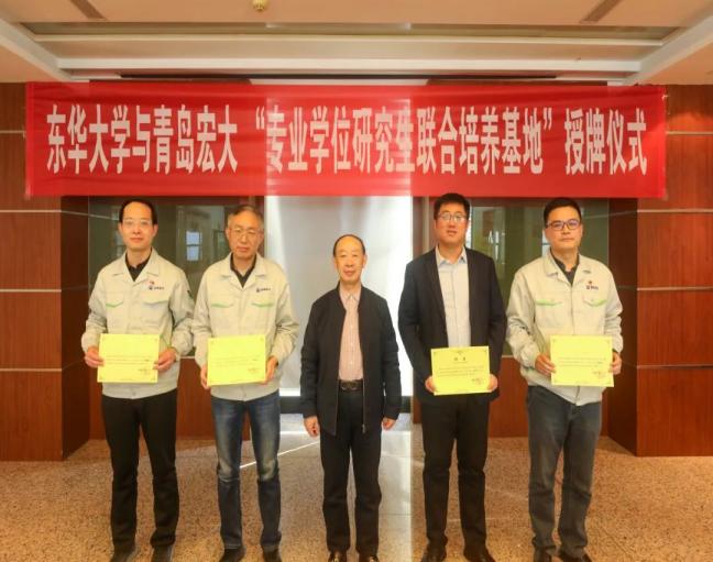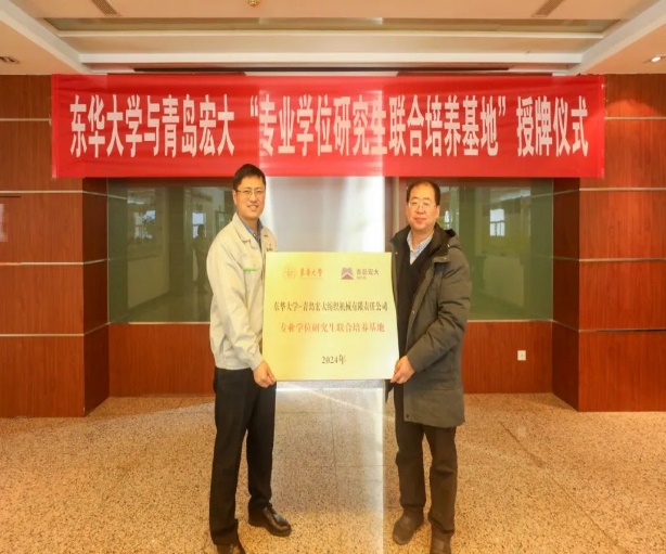 与青岛宏大纺织机械有限公司共建全日制专业学位研究生联合基地揭牌仪式顺利举行。经纬纺机总经理助理、技术中心主任、中央研究院青岛分院院长贾坤,青岛宏大党委书记、执行董事王丽霞,总经理张文新,中国工程院院士、91制片