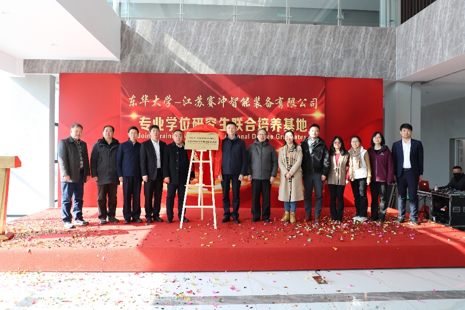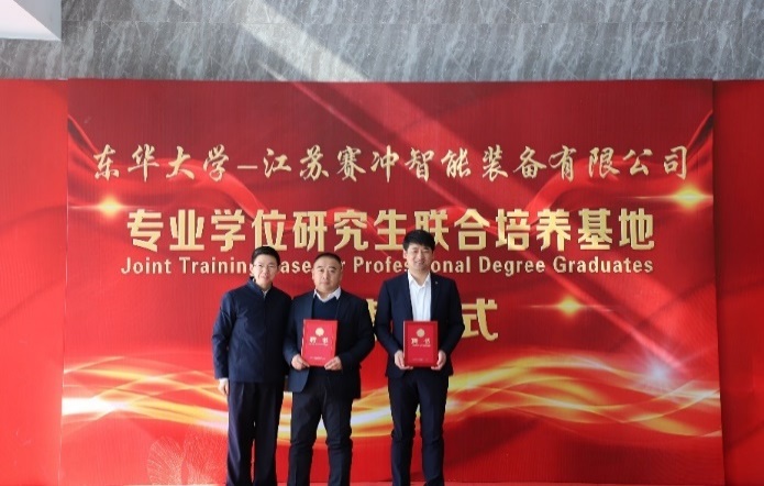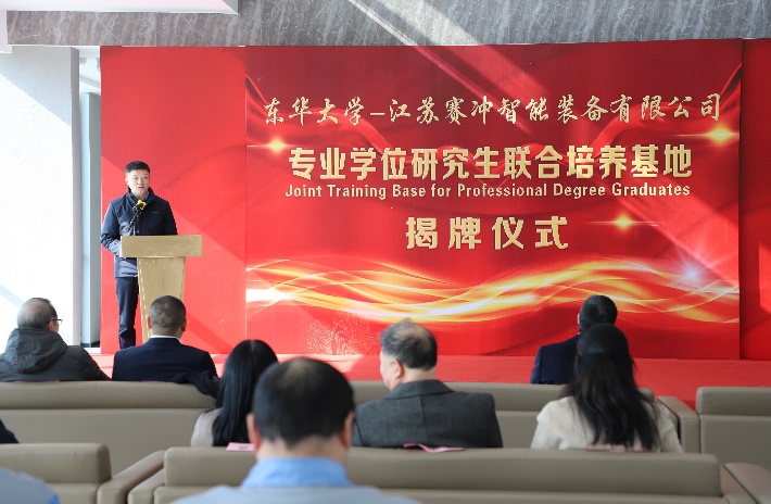 机械学院与江苏赛冲智能装备有限公司“专业学位研究生联合培养基地”授牌仪式在南通顺利举行。副校长陈革,江苏海门港新区党工委书记黄卫国,院长、纺织装备教育部工程研究中心主任单鸿波,江苏赛冲智能装备有限公司董事长王海涛,海门科技局党组副书记、副局长季煜鑫,海门港新区管委会副主任王彬,学院党委副书记杨蓉、副院长白涛、校外基地负责人王永兴教授及部分相关老师等参加本次活动。