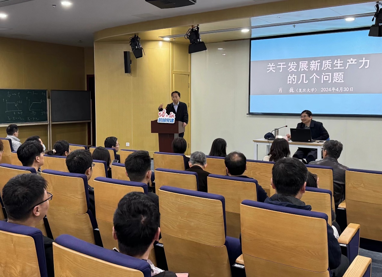 430日,机械学院邀请复旦大学马克思主义学院教授、博士生导师肖巍作《关于发展新质生产力的几个问题》主题报告,与马克思主义学院、国际合作处领导班子共同开展联组学习。会议由党委书记王新厚主持。