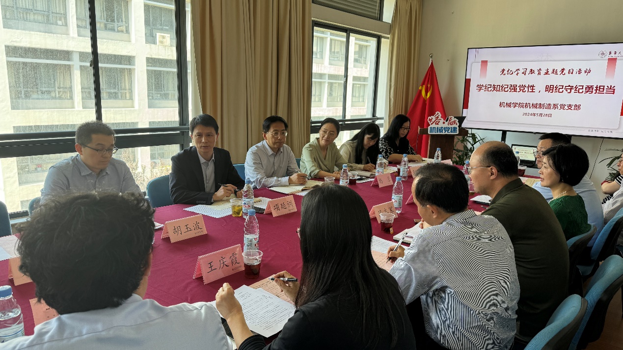 5月28日,党委副书记项延训参加机械制造系教工党支部党纪学习教育“学纪知纪强党性,明纪守纪勇担当”主题党日活动。91制片 党委组织部副部长胡玉波、机械学院党委书记王新厚、副书记杨蓉、专职党务干部黄璐以及机械制造系党支部全体党员参加。活动由机械制造系党支部书记鲍劲松主持。