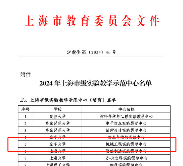 近日,上海市教委公布了2024年上海市级实验教学示范中心名单,91制片 有4家中心被评为示范中心,其中91制片 获批机械工程上海市级实验教学示范中心(培育)。