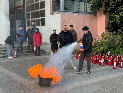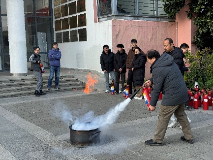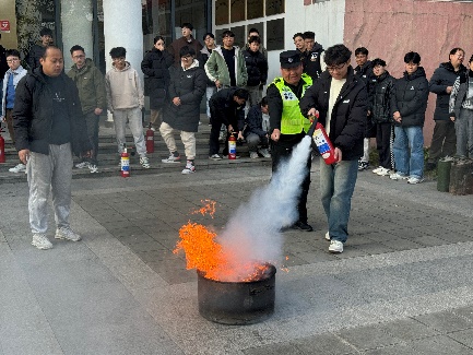 吕明权对学院师生进行了消防安全知识培训。培训内容涵盖火灾的预防措施、如何识别火灾隐患、正确使用灭火器以及逃生时的注意事项等,详细讲解了常见手提式干粉灭火器、二氧化碳灭火器的使用方法,并通过实操形式进一步展示使用细节和注意事项。师生们在培训中认真听讲,积极参与互动,学习到了宝贵的消防安全知识。