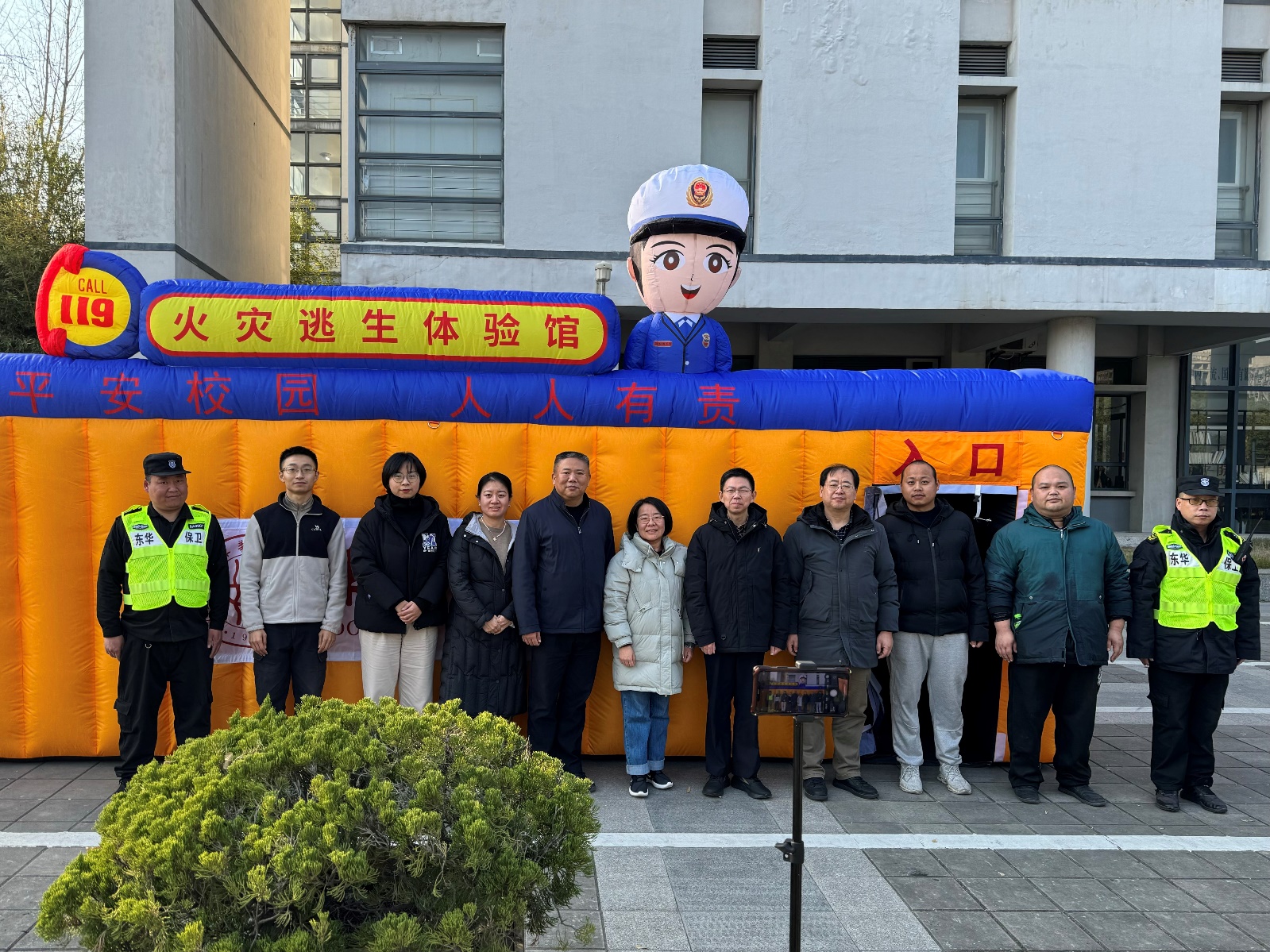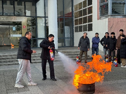 培训结束后,学院师生前往指定区域进行了灭火实操演练。每位参与者在保卫处老师的指导下,尝试自己使用灭火器灭火,提升了实际操作能力。此外,师生们还在火灾逃生体验馆进行了模拟逃生演练,感受真实火灾场景下的应急逃生技巧,增强了对火灾逃生的心理准备。