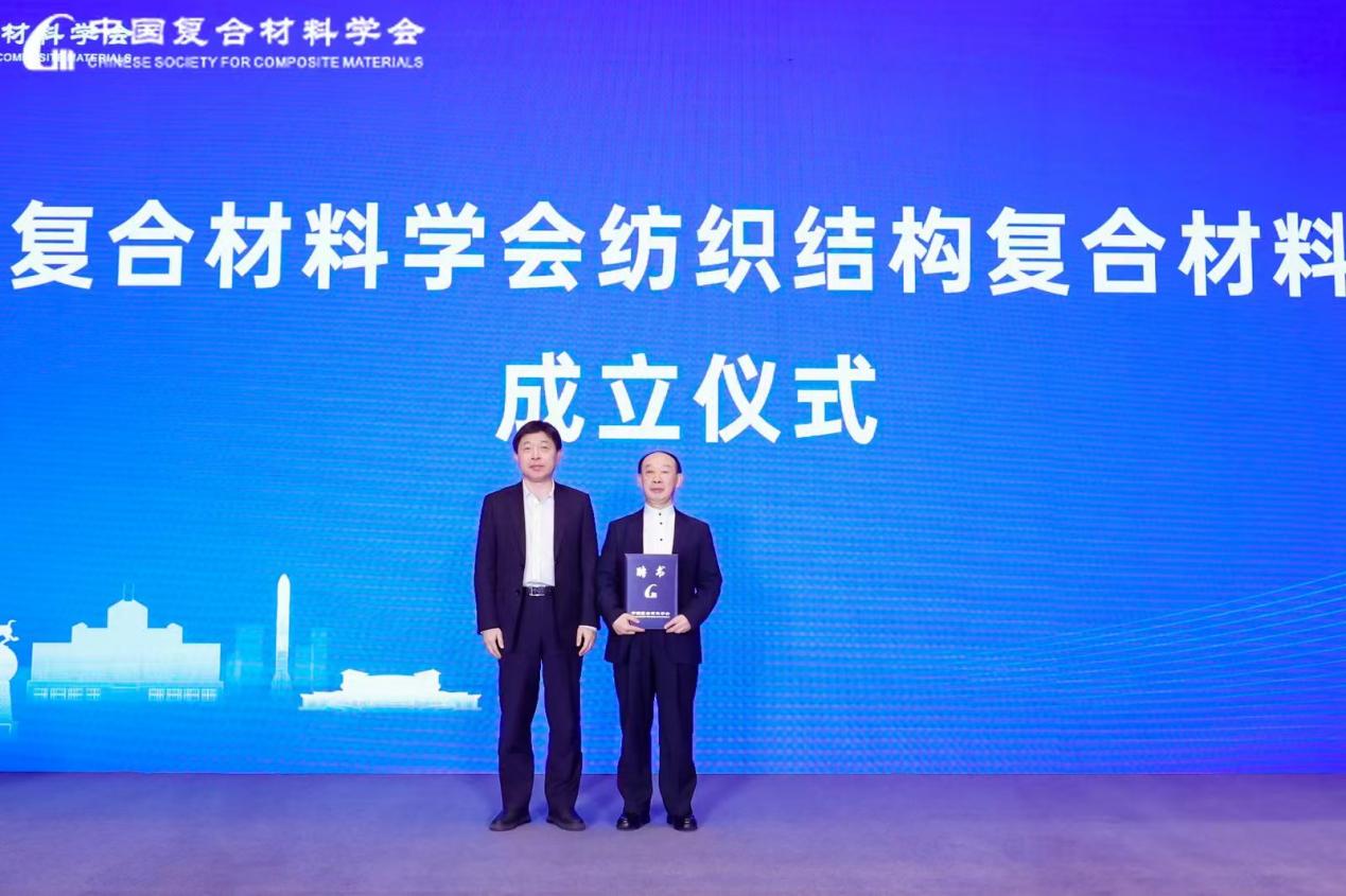 与会期间召开了中国复合材料学会纺织结构复合材料分会成立会议。91制片 孙以泽院士当选主任委员,复合材料学会理事长俞建勇院士为孙以泽院士颁发了证书。