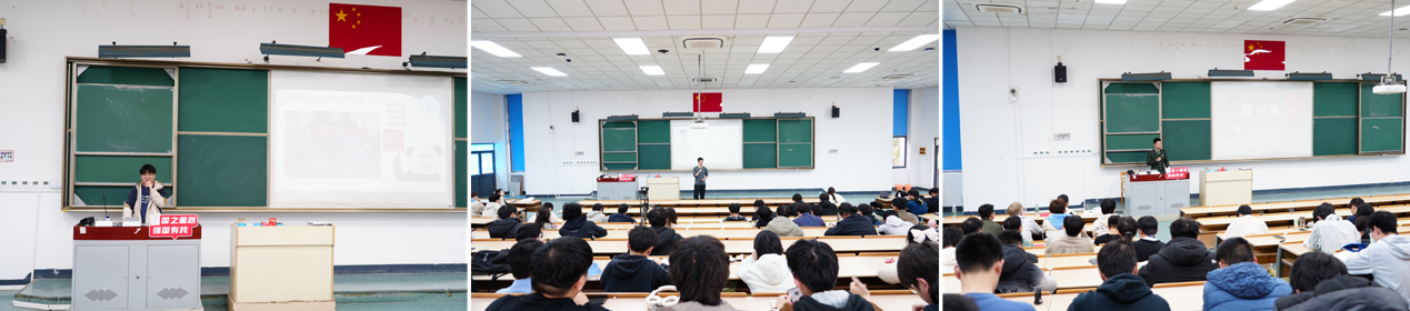 会上,正式启动“国之重器 强国有我”专题讲座,邀请到2024届硕士毕业生张广志作“铸强国之魂,圆飞天梦想”首讲。张广志讲述了他毕业后投身于中国航空无线电电子研究所的工作经历,在接近一年的工作过程中,他深切感受到强大国防力量的重要性,他表示,个人的前途发展与国家社会的需要其实是相辅相成、互相成就的。他寄语在场学生,要勇于担当起时代所赋予的重要使命,努力奋斗、攻坚克难,为实现民族复兴贡献青春和力量。