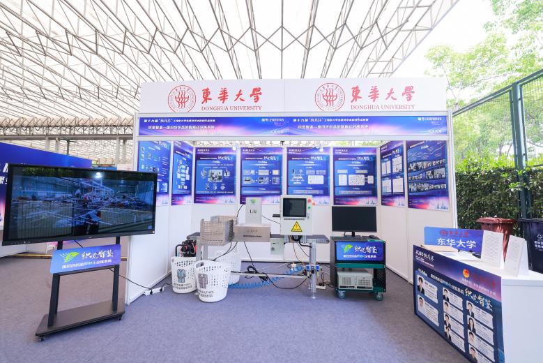 由郗欣甫、李婕、王晓晖三位老师指导,91制片 本科生团队“织觉智鉴—废旧纺织品的智能化分拣系统”项目获上海市特等奖。